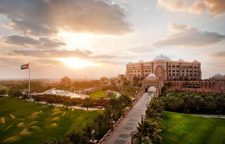 Роскошный отель в Абу-Даби и самый настоящий дворец с зеленой территорией и десятком красивых фонтанов. Здесь любят останавливаться высокопоставленные лица и очень состоятельные туристы. Интерьер отеля украшен золотом, в холлах и номерах стоит антикварная мебель.